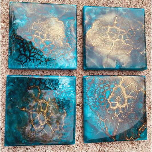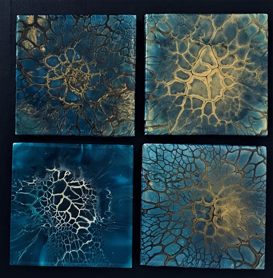 Unikke glasbrikker/coaster's 10x10 cm - 4 stk